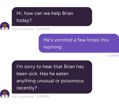 Detects potential emergencies early. By analysing user responses for vet-approved red-flag symptoms, our AI asks smart follow-up questions to assess severity and guide pets to in-person care when needed.